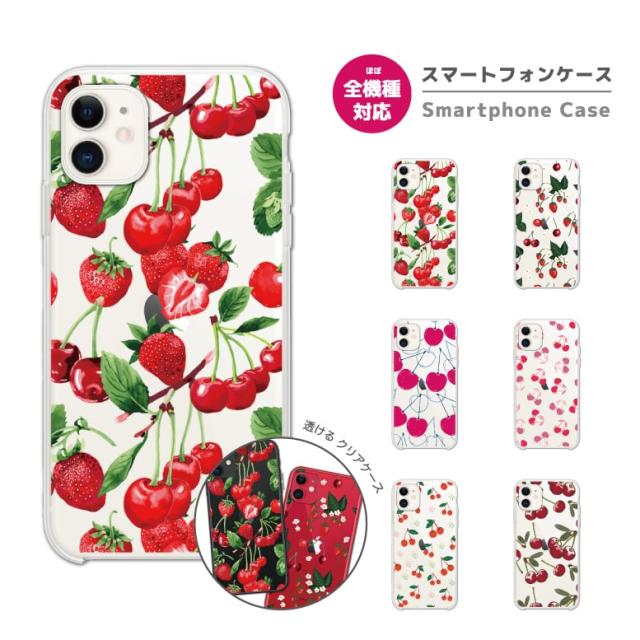 スマホケース 全機種対応 ハード iPhone17 iPhone17e ケース AQUOS sense10 sense9 wish5 Google Pixel9a Pixel10a Xperia 10 VII Galaxy S26 A25 5G OPPO Reno 13A iPhone16 iPhone15 Pro チェリー クリア 透明