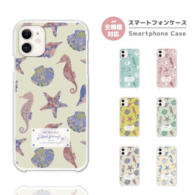 スマホケース 全機種対応 ハード iPhone17 iPhone17e ケース AQUOS sense10 sense9 wish5 Google Pixel9a Pixel10a Xperia 10 VII Galaxy S26 A25 5G OPPO Reno 13A iPhone16 iPhone15 Pro イラスト 海 夏 タツノオトシゴ