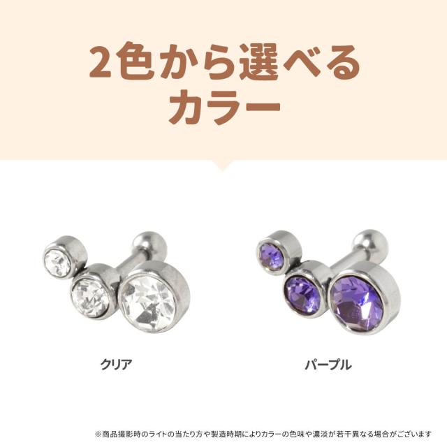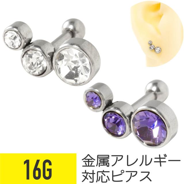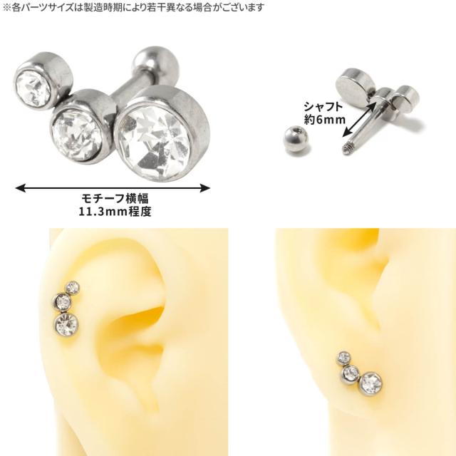 3連 ジュエル ラウンド ストレートバーベル 16G サージカルステンレス ジルコニア ジュエル イヤーロブ ヘリックス 軟骨ピアス ボディピアス 3 ジュエル ラウンド