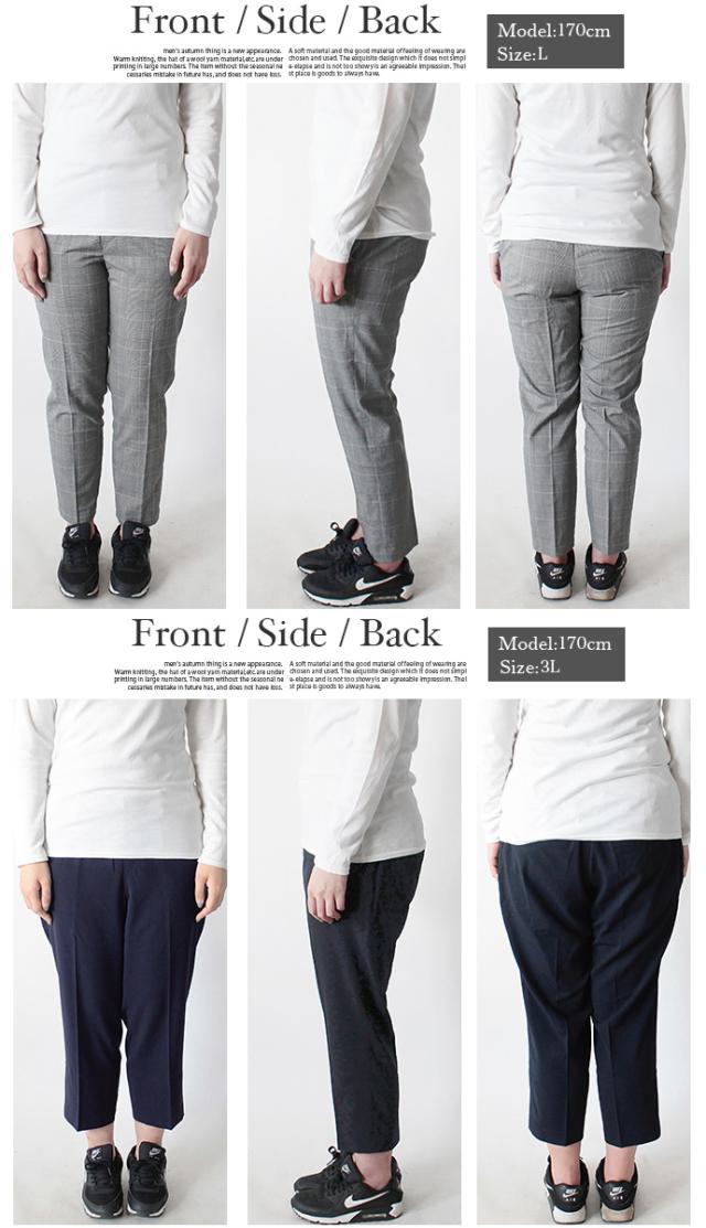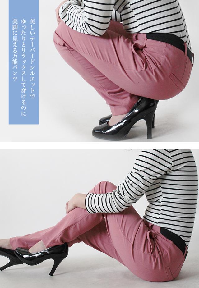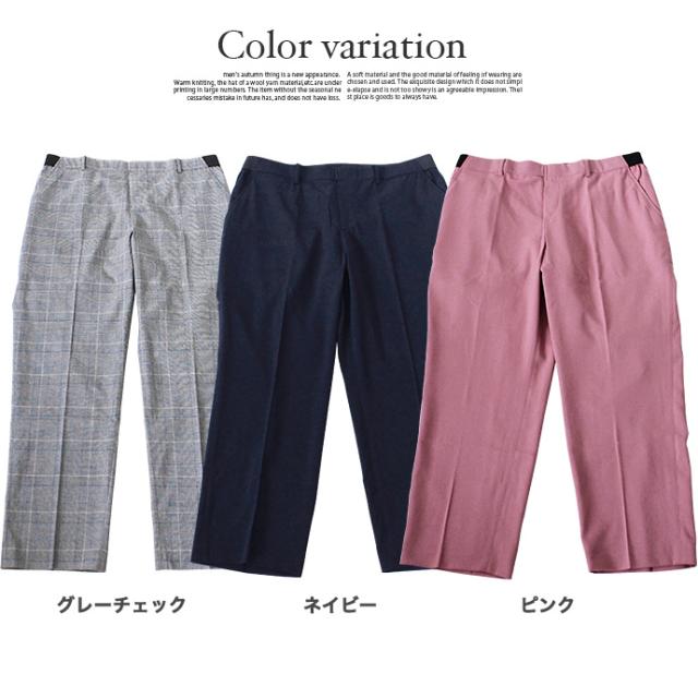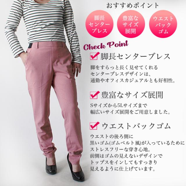 値下げ レディース パンツ アンクルパンツ テーパードパンツ 美脚パンツ センタープレス ウエストバッグゴム 大きいサイズ
