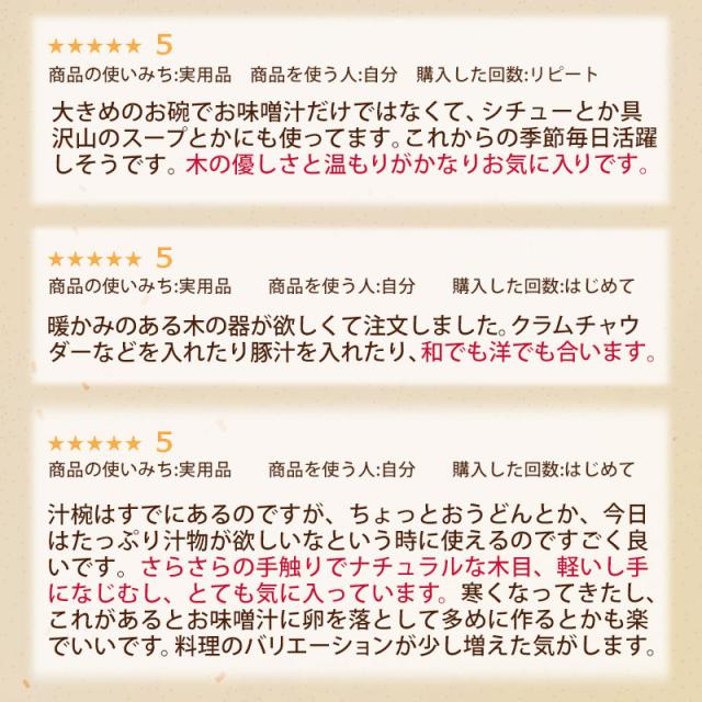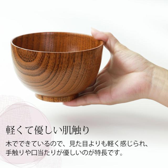また、木製のお椀は熱伝導率が低いので冷めにくく、最後まで温かいまま、召し上がる事ができます。