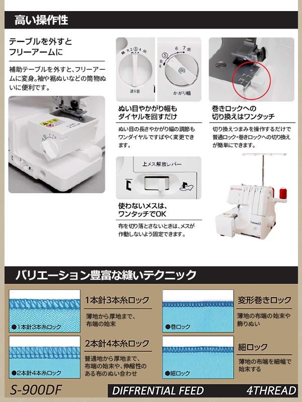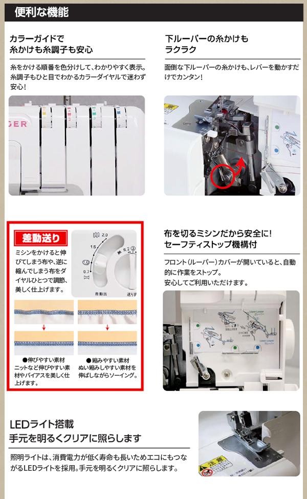 | 操作説明DVD付き!!便利な機能で楽しく創れる2本針4本糸差動機能付きロックミシンです♪ |