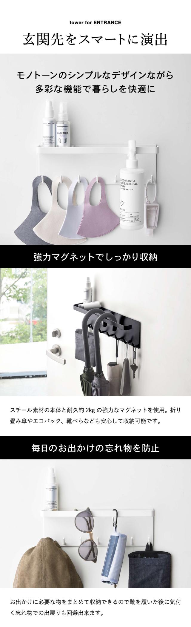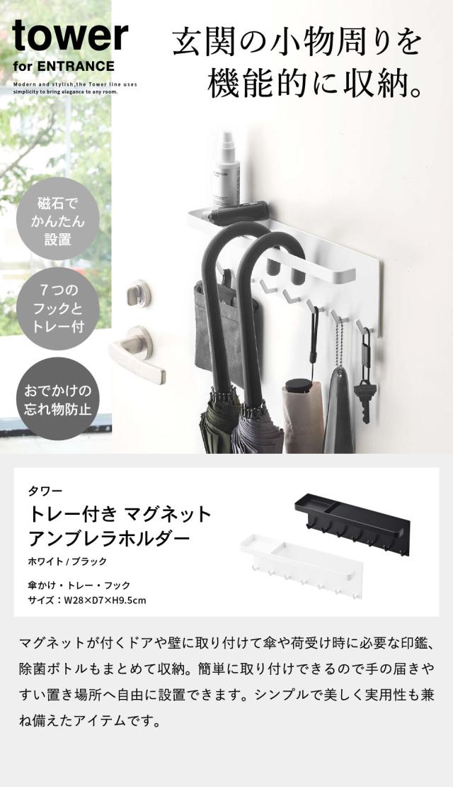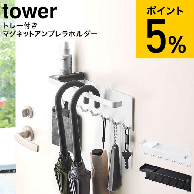 tower 山崎実業 送料無料 タワー トレー付き マグネットアンブレラホルダー ホワイト ブラック 5685 5686 傘立て アンブレラスタンド 玄関収納 フック付き 傘 折りたたみ傘 鍵 キー 鍵掛け 磁石 マグネット 誕生日プレゼント