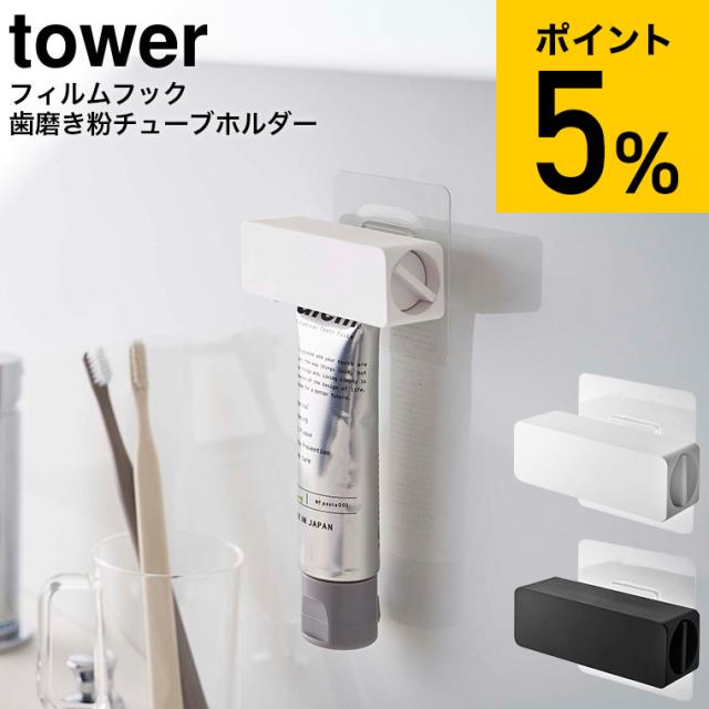 tower 山崎実業 タワー フィルムフック 歯磨き粉チューブホルダー ホワイト ブラック 5625 5626 歯磨き粉ホルダー 歯磨き粉立て 歯磨き粉ディスペンサー 歯磨き粉絞り 洗面所 浮かせる収納 誕生日プレゼント