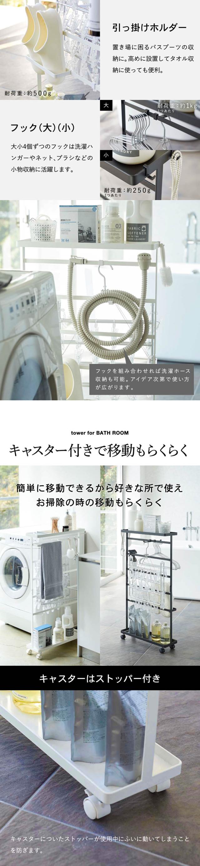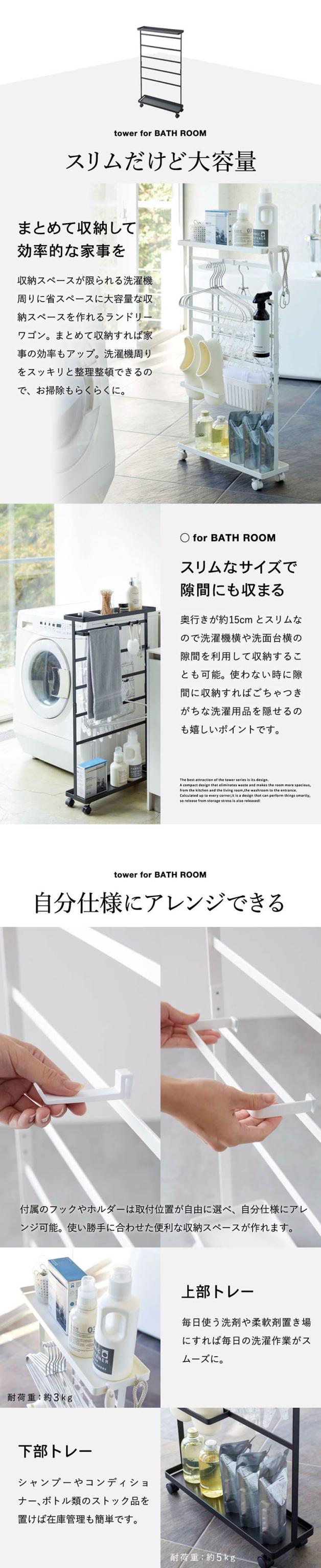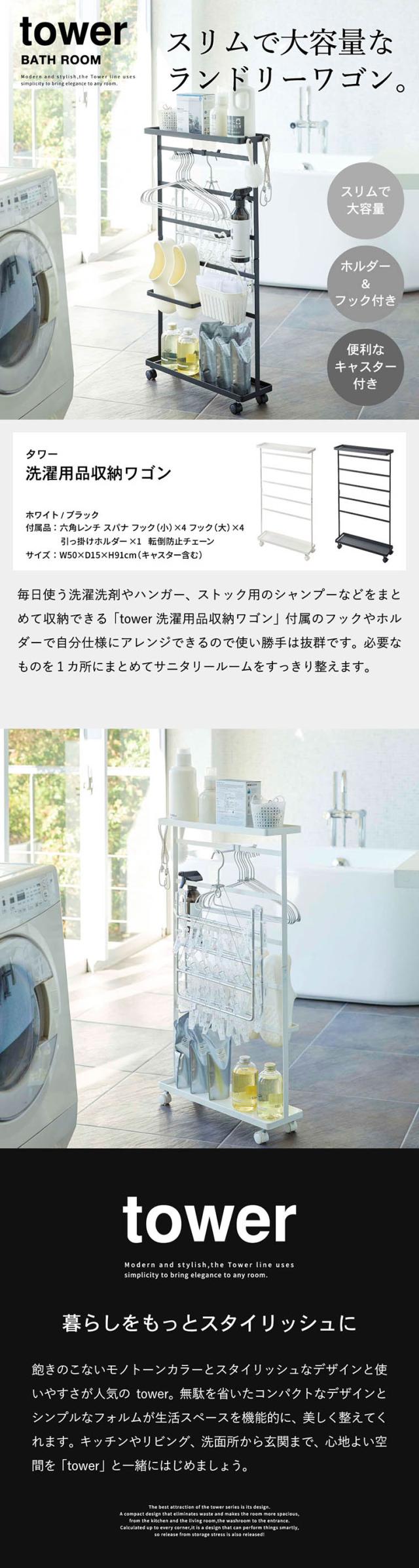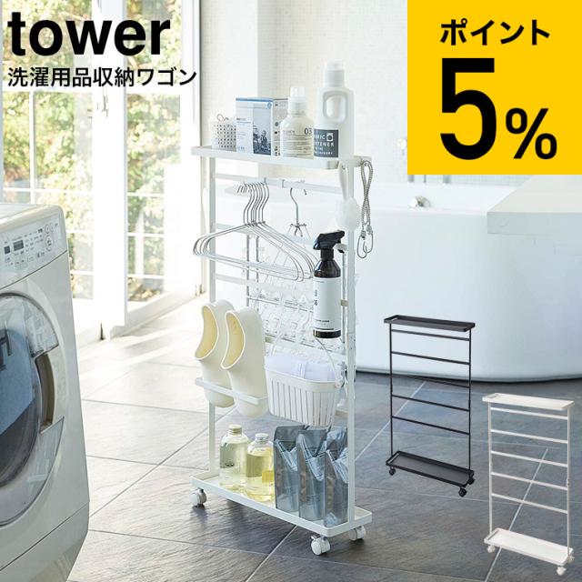 tower 山崎実業 送料無料 タワー 洗濯用品収納ワゴン ホワイト ブラック 5655 5656 洗剤 ハンガー 小物 ランドリーグッツ バスブーツ スリッパ 洗濯ネット 収納 フック 大容量 ワゴン 誕生日プレゼント