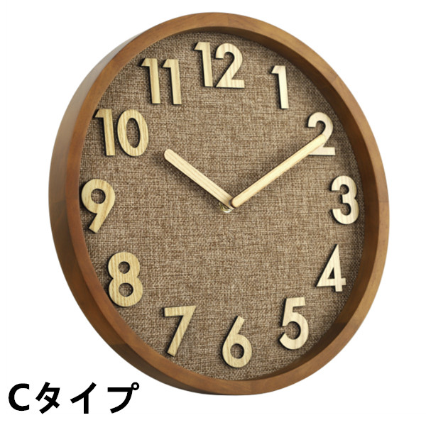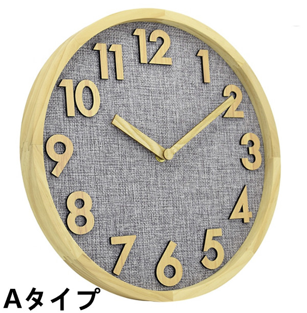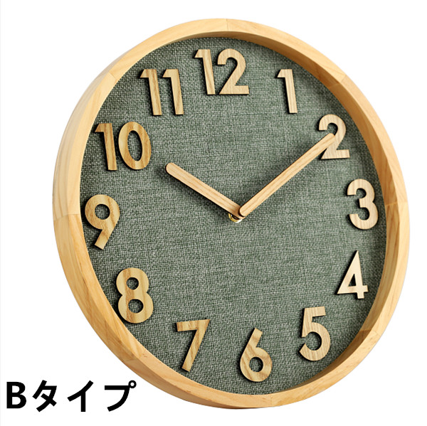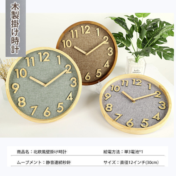 掛け時計 壁掛け時計 北欧 おしゃれ 音がしない 木製 天然木 ウォールクロック 見やすい 立体数字 直径30cm