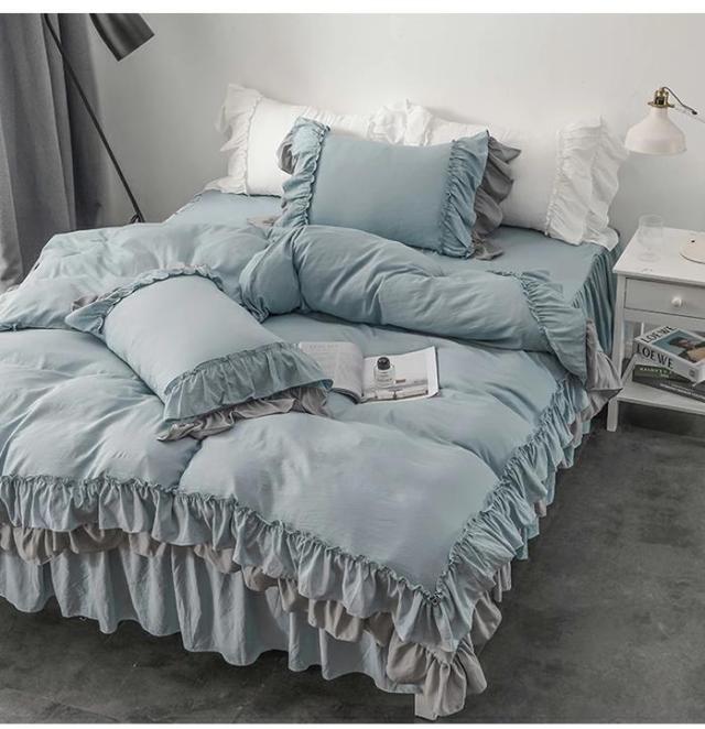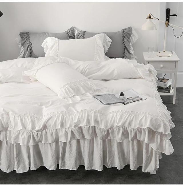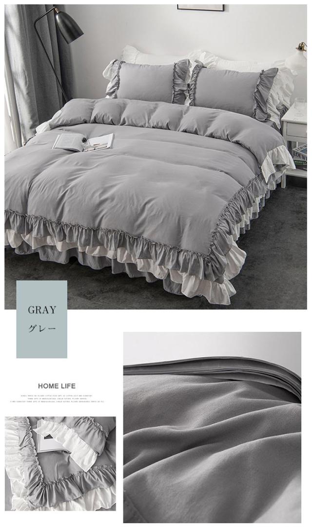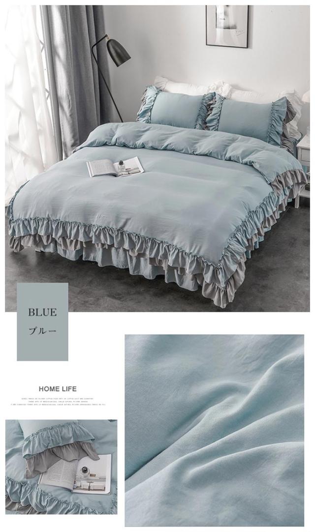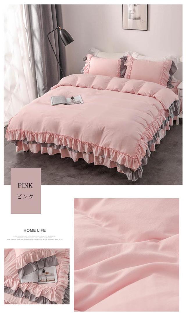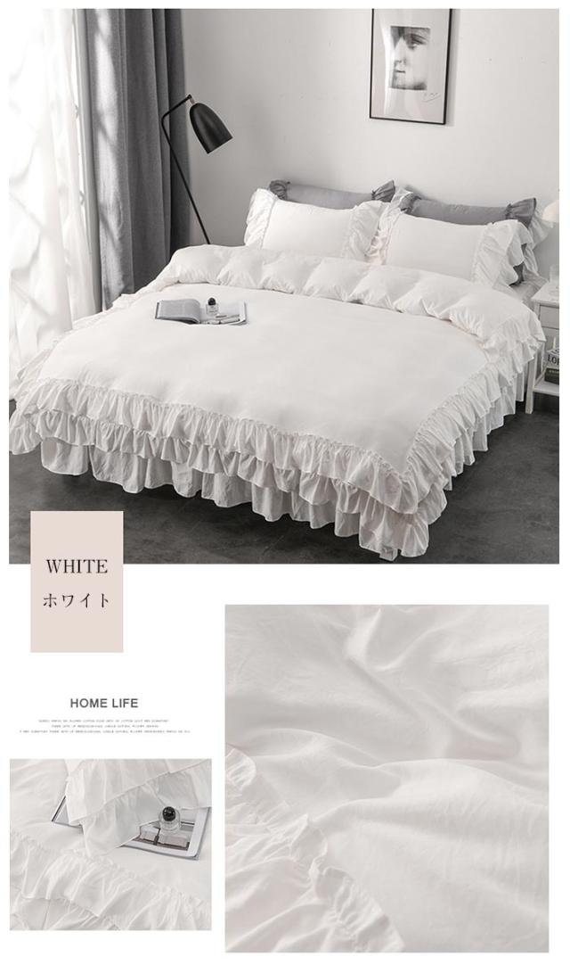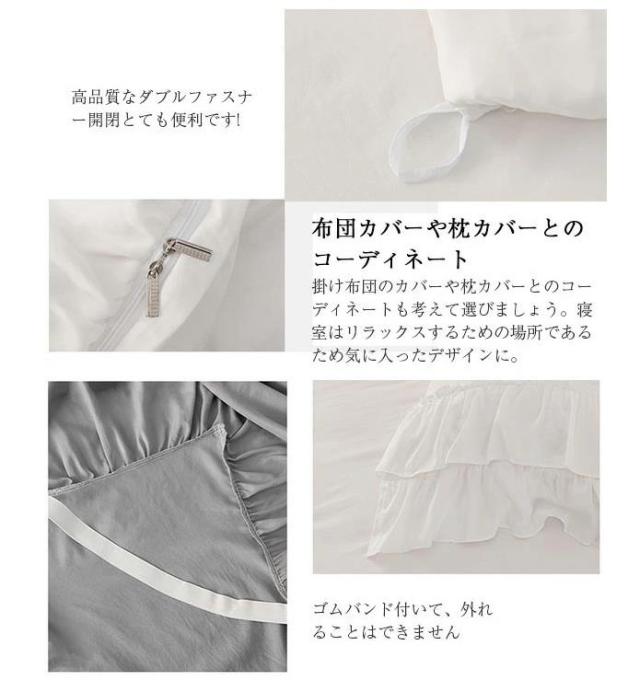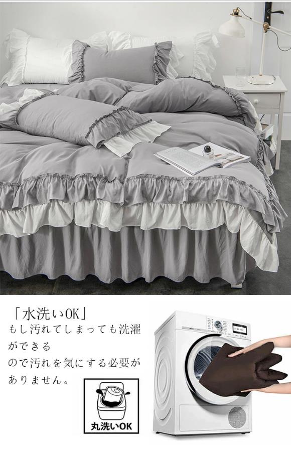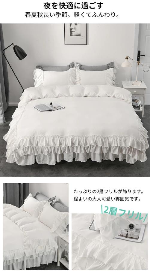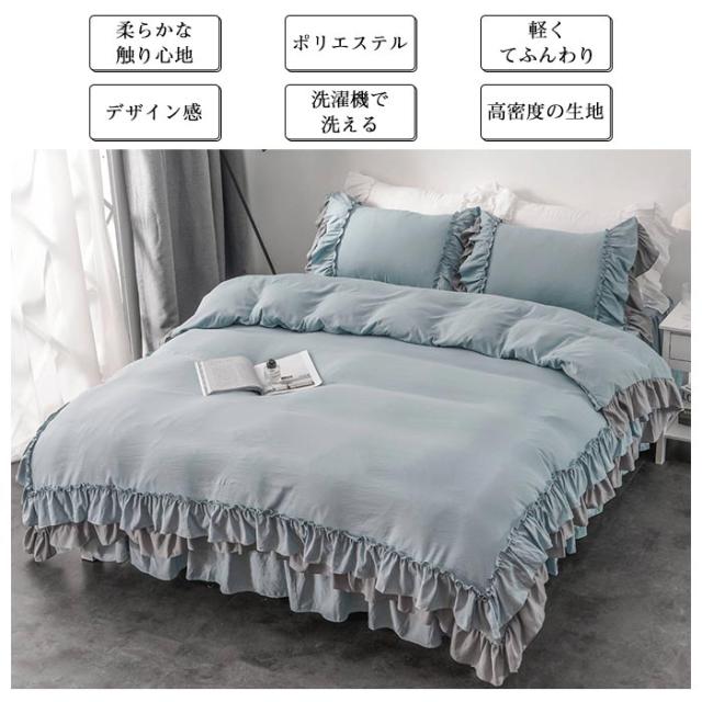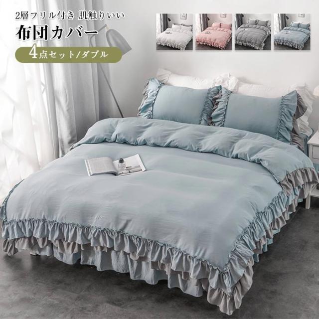 布団カバーセット 4点セット ベッドスカート 2層フリル付き 可愛い ダブル 掛け布団カバー フリル シーツ 枕カバー 柔らかい 肌触りいい 通気性 丸洗いOK 姫系 北欧 清潔 寝具カバーセット