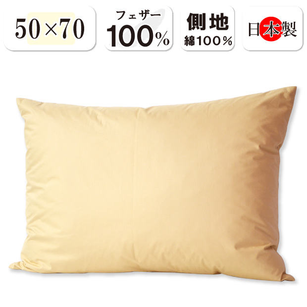 フェザー100% ヌード フェザー枕 50×70cm 日本製 大きめ 羽根まくら 側生地 綿100% 羽根枕 ヌード フェザーピロー スモールフェザー はね 羽根 羽枝 しっかりめ 抗菌防臭加工無料