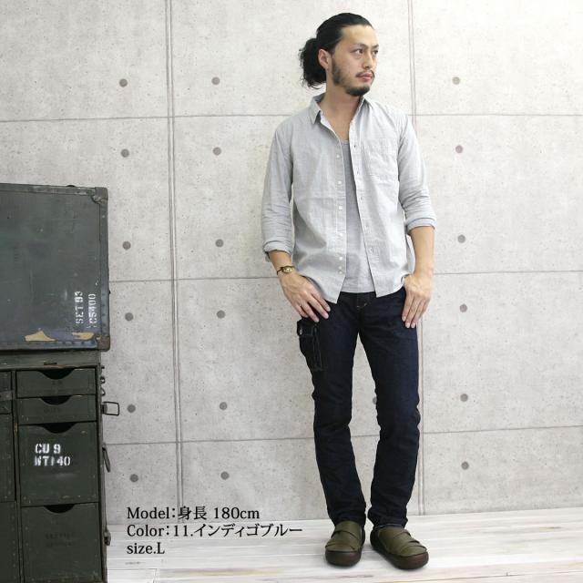 【着用サイズ感について】 ◆スタッフKAZUYA 【身長175cm/普段のボトムスはSサイズ(28インチ)を着用】 Mサイズを着用しました。 ウエスト・太もも・ふくらはぎにかけて程よくゆとりがあるが、スッキリとした細身のシルエットで着用することができました。 Sサイズだと全体的にフィット感のある細身のシルエットになるが、ストレッチの無い股上が浅めの作りの為、昨今のジーンズと比べて若干の窮屈感を感じました。 リピーター様はお持ちのサイズ選びで間違いないですが、新規購入者様はサイズ感で好みが分かれるところだと思います。 多くの方々が待ち焦がれていたジョンブルのジーンズの中でも最高峰のリピート率を誇るワンサイドカーゴジーンズ 。その復活は素直に嬉しいですね。 |