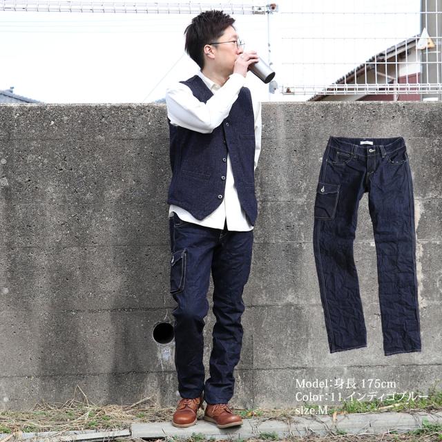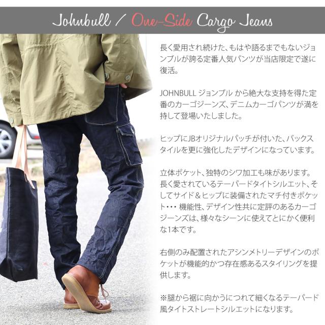 【当店別注アイテム】ジョンブル メンズ Johnbull スリムテーパード ワンウォッシュオイル汚し加工 ワンサイド ポケット カーゴジーンズ 11101 ワンサイデット デニム パンツ カーゴパンツ 送料無料 John bull おしゃれ 児島 ストレート アーベン