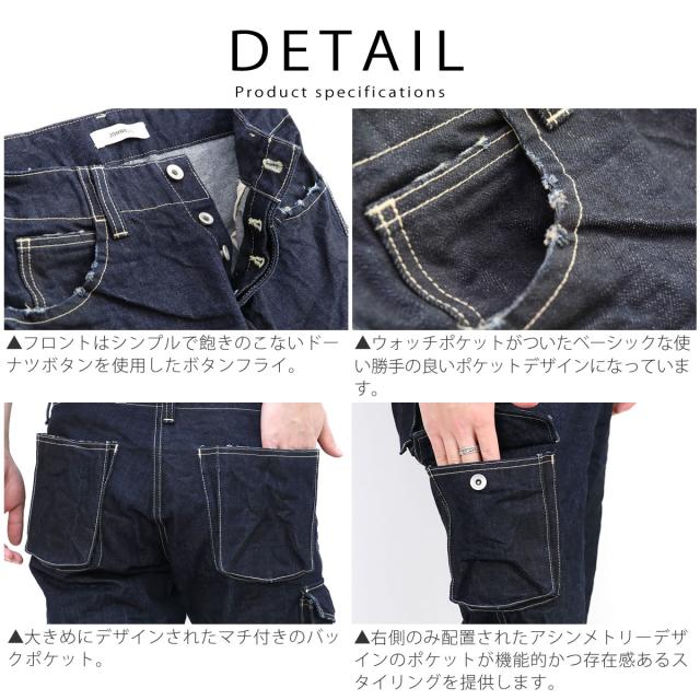 ■ johnbull ジョンブル 商品説明 長く愛用され続けた、もはや語るまでもないジョンブルが誇る定番人気パンツが当店限定で遂に復活。 JOHNBULL ジョンブル から絶大な支持を得た定番のカーゴジーンズ、デニムカーゴパンツが満を持して登場いたしました。 ヒップにJBオリジナルパッチが付いた、バックスタイルを更に強化したデザインになっています。 立体ポケット、独特のシワ加工も味があります。 長く愛されているテーパードタイトシルエット、そしてサイド&ヒップに装備されたマチ付きポケット・・・ 機能性、デザイン性共に定評のあるカーゴジーンズは、様々なシーンに使えてとにかく便利な1本です。 右側のみ配置されたアシンメトリーデザインのポケットが機能的かつ存在感あるスタイリングを提供します。 ※腿から裾に向かうにつれて細くなるテーパード風タイトストレートシルエットになります。 |