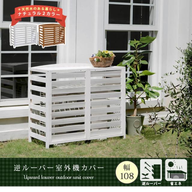 Edna(エドナ)逆ルーバー室外機カバー 幅108cm 天然木 逆ルーバー 室外機カバー 木製 ホワイト ベランダ バルコニー