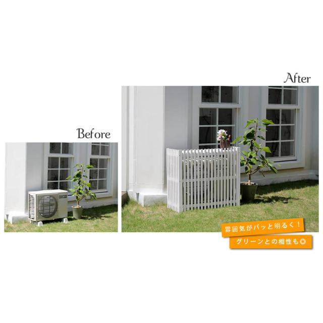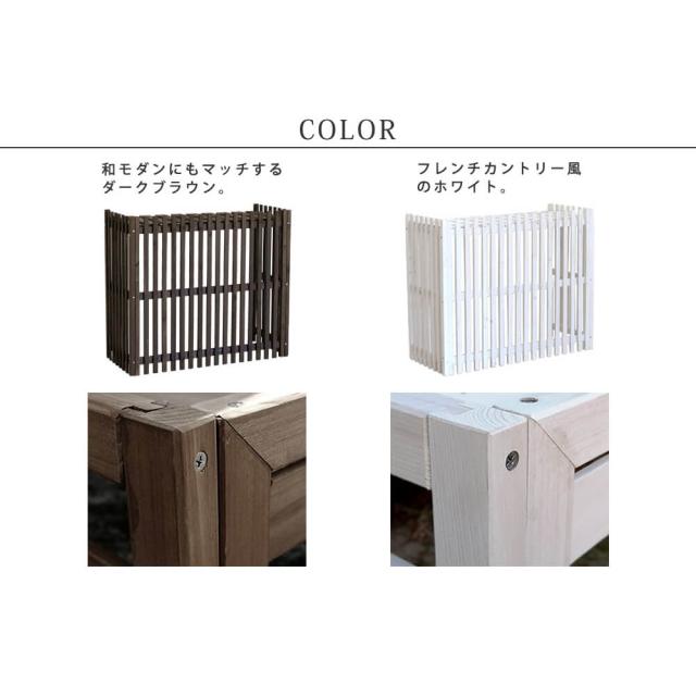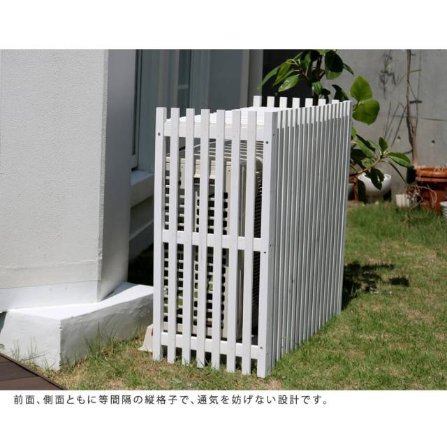 天然木 逆ルーバー 室外機カバー 木製 ホワイト ベランダ