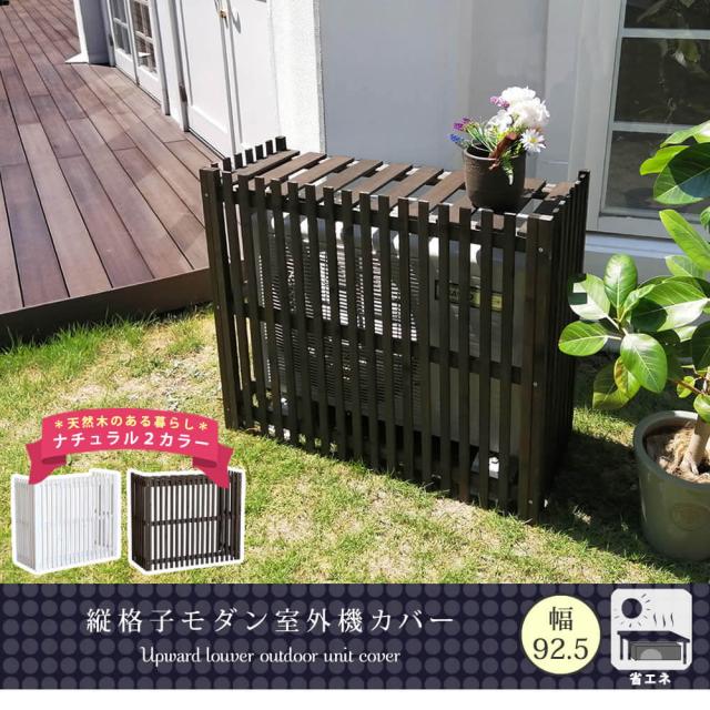 Kutla(クトラ)室外機カバー 幅92.5cm 天然木 逆ルーバー 室外機カバー 木製 ホワイト ベランダ バルコニー