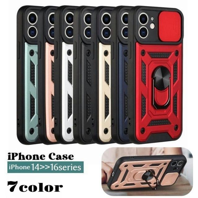 iPhone対応ケース iPhone対応カバー スマホケース スマホカバー リング付き レンズカバー付き スライド式 背面保護