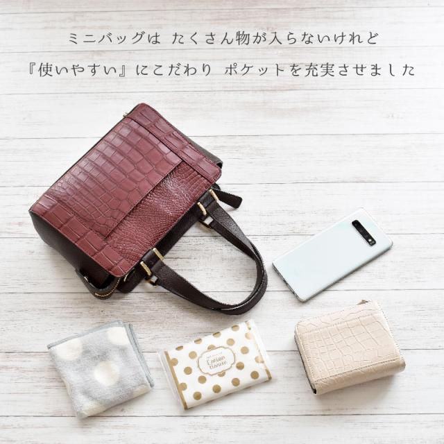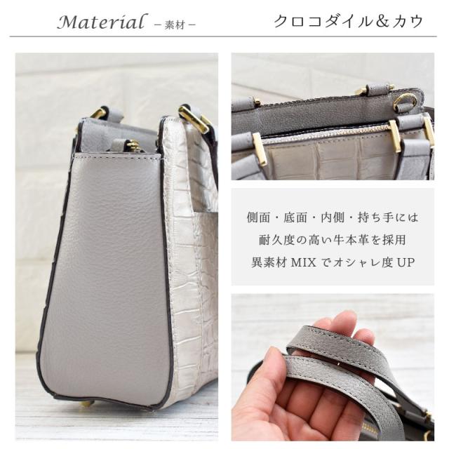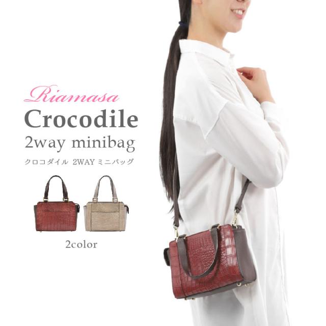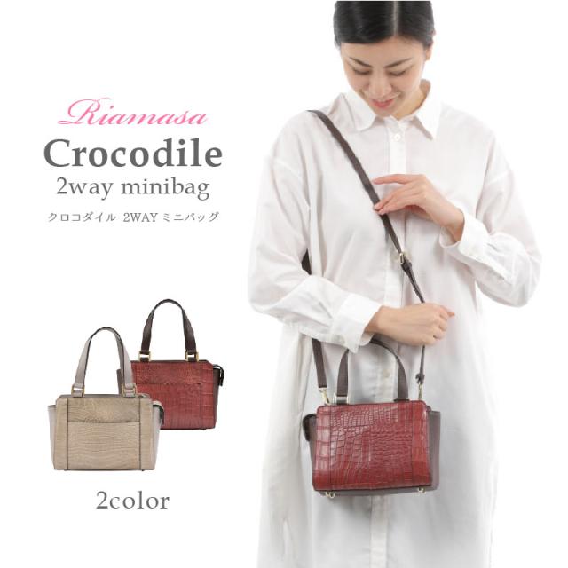 Riamasa クロコダイル 本革 ハンドバッグ レディース 女性 2way ショルダーバッグ 小さめ ミニショルダー ワニ革 ブラウン グレー ミニバッグ レザー 軽い おしゃれ カジュアル 鰐革 リアマッサ ブランド 人気 上品 大人 キレイめ 母の日 ギフト 送料無料