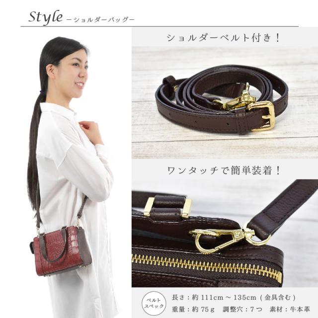 | 特徴 | 【材質】 エキゾチックレザーの代表格『クロコダイル』 圧倒的な存在感は美しく ラグジュアリーな雰囲気があります 使い込む程に 美しい艶が生まれ 色味に深みが増していきます 当店はクロコダイルを扱い始めて約70年が経ちます スペシャリスト達が厳選した本物のクロコダイルを 是非その手で 目で ご堪能下さい 側面・底面・内側・持ち手には 耐久度の高い牛本革を採用 異素材MIXでオシャレ度UP 【ショルダーベルト】 ワンタッチで簡単装着! 長さ:約111cm〜135cm (金具含む) 重量:約75g 調整穴:7つ 素材:牛本革 【その他】 ミニバッグは たくさん物が入らないけれど 『使いやすい』にこだわり ポケットを充実させました メイン収納の両側はあおりポケット(隠しポケット)ハンカチなどをサッと取り出せます 必要最低限のポーチスマートフォン二つ折り財布などを収納可能 幅が約14cm深さが約9cmのポケット付き パスケースなどの小物の収納に便利です 高級感のあるゴールドの角カンが良いアクセントに ハンドルが自在に動く取りまわしの良さもポイントです 底鋲付きで安定して自立汚れや擦れからバッグを守ります ファッションや気分に合わせて変えられるバッグのアクセントをカラーに合わせて2つご用意致しました |