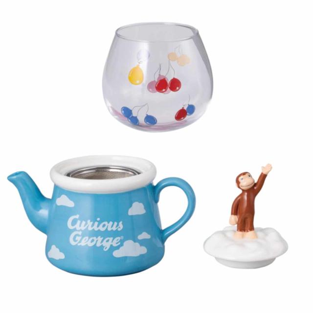 ティーセット おさるのジョージ ティーポット グラス ガラス 磁気 ( 紅茶ポット 急須 ストレーナー 茶こし ガラスコップ コップ カップ お茶用品 ティーウェア コーヒー 紅茶 ティータイム 可愛い インテリア キャラクター )