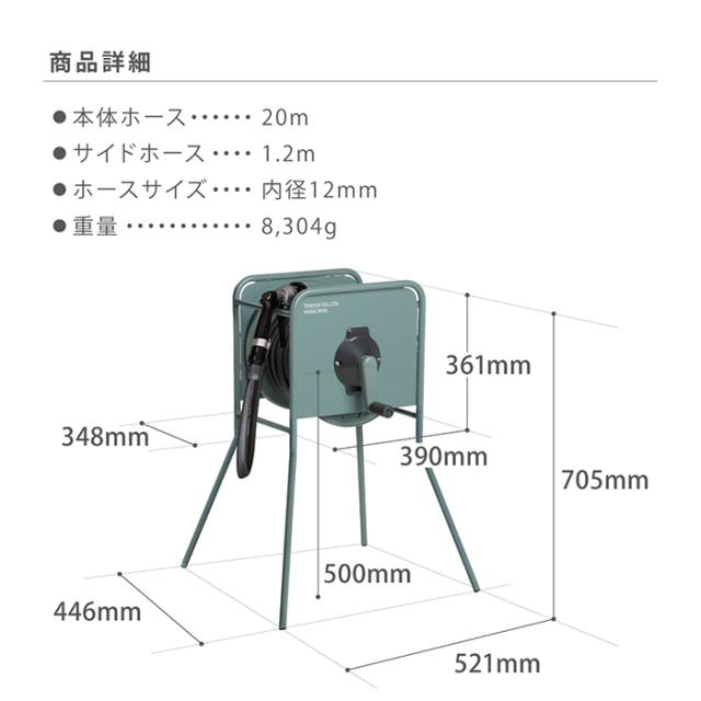 タカギ ホース ホースリール 20m 金属製 散水 洗車 掃除 園芸 家庭菜園 ガーデニング 水やり 4水形 プール 水まき 脚付き 防藻 ねじれにくい 右利き 左利き ステンレス リフトメタル グリーン RF320GY 内径12mm takagi 公式 2年間保証