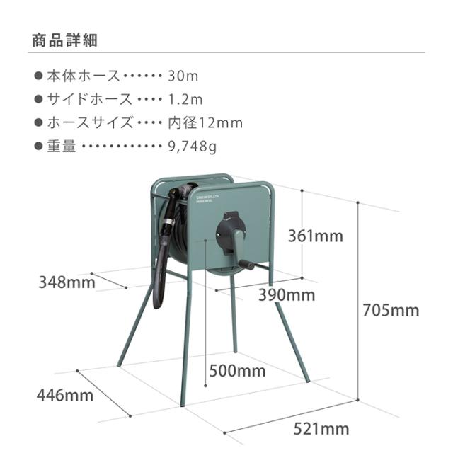 タカギ ホース ホースリール 30m 金属製 散水 洗車 掃除 園芸 家庭菜園 ガーデニング 水やり 4水形 プール 水まき 脚付き 防藻 ねじれにくい 右利き 左利き ステンレス リフトメタル グリーン RF330GY 内径12mm takagi 公式 2年間保証