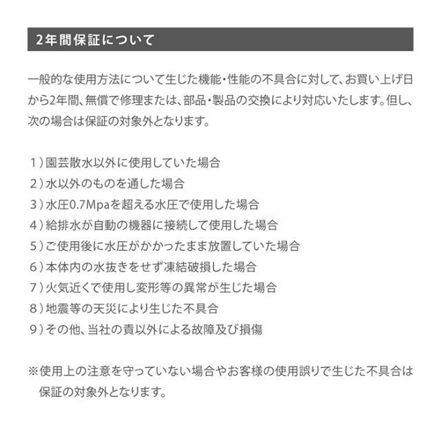 ・本製品は一般家庭での屋外散水用品です。それ以外の目的には使用しないでください。