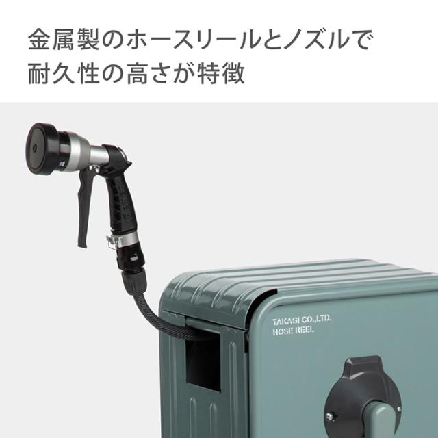 タカギ ホース ホースリール 20m 金属製 散水 洗車 掃除 園芸 家庭菜園 ガーデニング 水やり 4水形 プール 水まき カバー付き 脚付き ホースガイド 防藻 ねじれにくい 右利き 左利き リフトメタルBOX グリーン RFC320GY 内径12mm takagi 公式 2年間保証