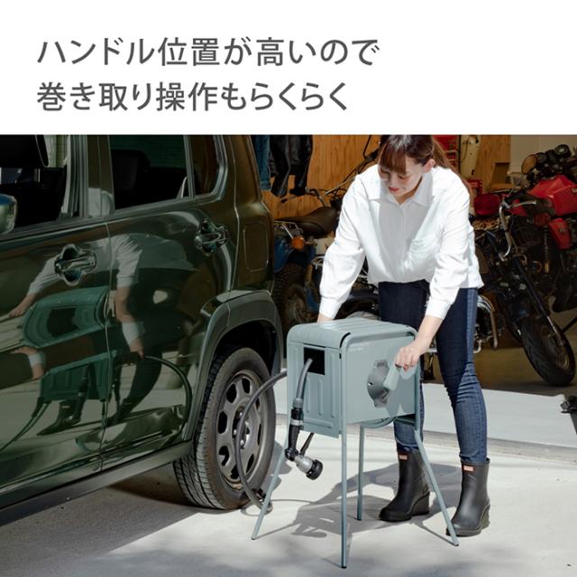 - 庭に置いてありますが、おしゃれな見た目で良いです。 足が取り外すことができるため用途に合わせて調節できますし、高さを出すと巻き取る際本体に汚れがつきにくいため気に入っています。