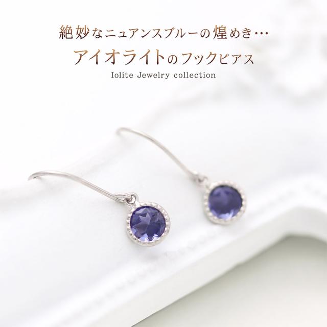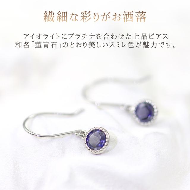 プラチナ ピアス フック レディース アイオライト 宝石 揺れる フックピアス ジュエリー Pt900 3月誕生石 シンプル 誕生日 プレゼント 記念日 お祝い ギフト 女性 ゆれる おしゃれ 可愛い 小ぶり 一粒 丸い 彼女 妻 奥さん 嫁 20代 30代 40代 ホワイトデー お返し