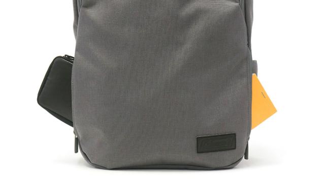 さらにその下にはもう一つ、広めでシンプルな構造のフロントポケットが完備。こちらはバッグを背負ったまま、左右どちらからでも手が届く便利な仕様になっています。ドリンクや長財布、パスケースなど、頻繁に使用するアイテムの収納に最適です。