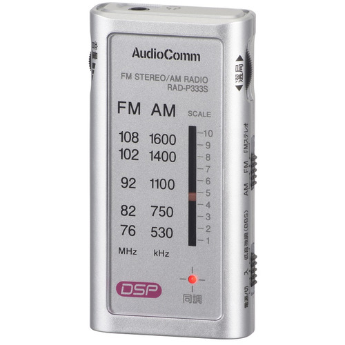 オーム電機 RAD-P333S-S ライターサイズラジオ シルバー