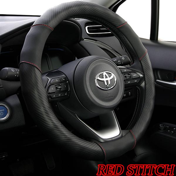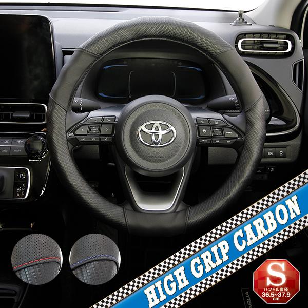 ハンドルカバー 軽自動車 コンパクトカー ミニバン ハイグリップカーボンステッチ ブラック レッド ブルー Sサイズ36.5〜37.9cm フェリスヴィータ