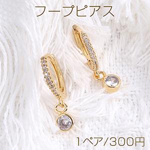 高品質フープピアス ジルコニアフープピアス ラウンド 14×22mm ゴールド(1ペア)