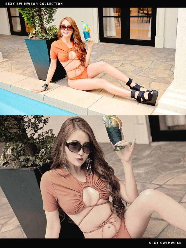 ☆大胆にあいたバストカットから覗く谷間がセクシーすぎるモノキニは内谷間を魅せる珍しいデザインがまわりと被りにくく、インスタ映えもしっかりできちゃうキャメルビキニ♪