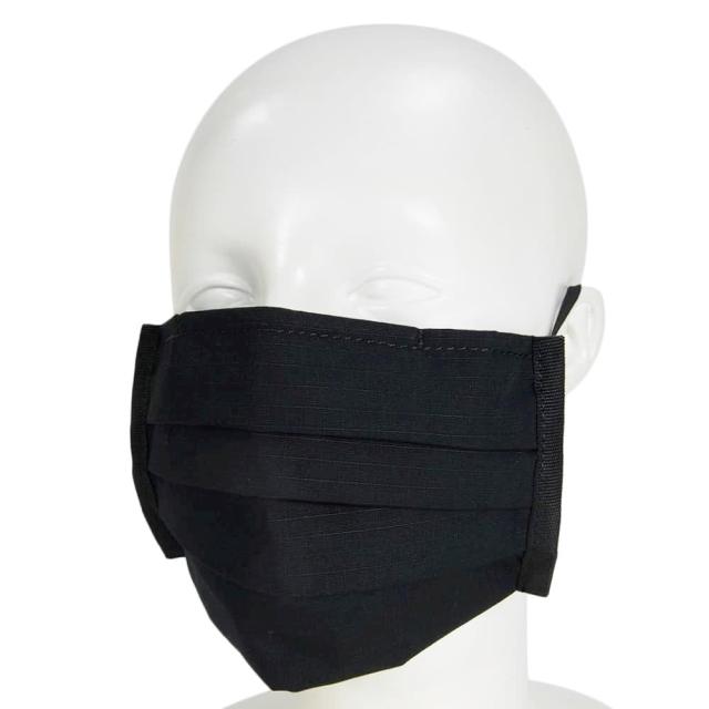 ミリタリー装備に採用されるリップストップ生地で出来た強度の高いマスク。顔の形に影響されにくいプリーツ型。鼻・口・顎のラインに合わせてマスクをフィットさせられます。生地は二重でポケット構造になっているため、不織布のフィルターシートを挿入可能。