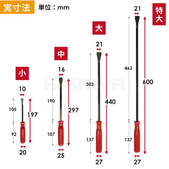 用途が使い分けできる、便利な4サイズセット! ●用途で使い分けができる、4サイズのセット ●ベルト調整や足回りの脱着、コジる作業など、車やバイクの整備に最適! ●解体現場やDIYなど、様々なシーンでも活躍できます ●プラスチックのグリップは持ちやすく、軽量で使いやすい ●保管時など周囲に傷を付けにくい保護キャップ付き 【ご注意】 ※パイプなどで延長して使用しないでください ※必ず手でグリップ部に力をかけてください ※本製品は、貫通仕様ではありませんので、ハンマー等で叩いて使用しないでください ※強引な使用をしないで下さい(変形や潰れの原因になります) 品番:H39D575 |