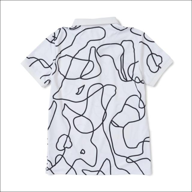 カモフラージュのアウトラインが線で表現されたアーティステックなデザインの半袖ポロシャツ。