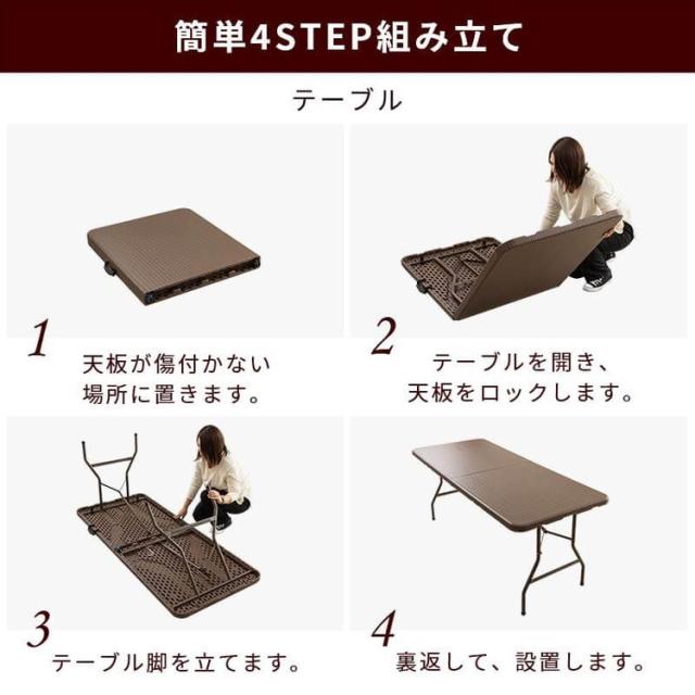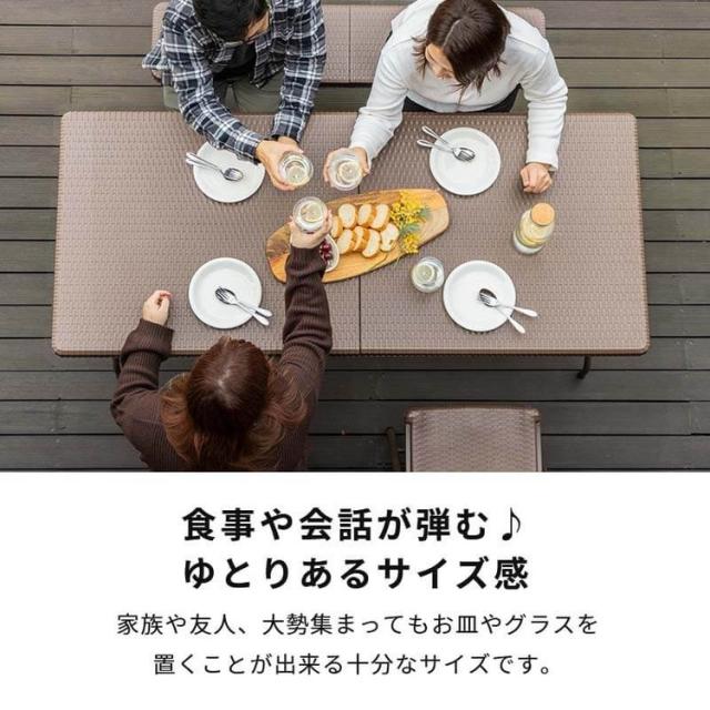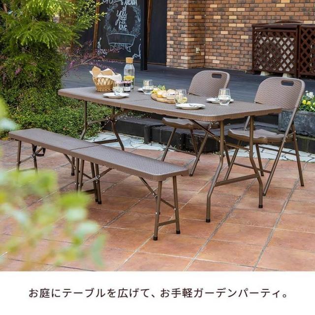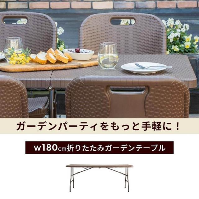 ラタン調 幅180cm折りたたみガーデンテーブル