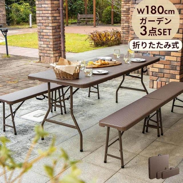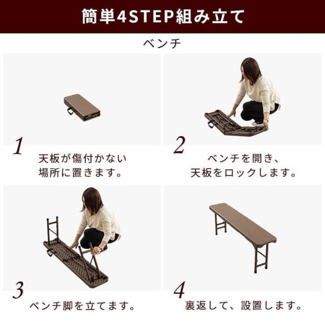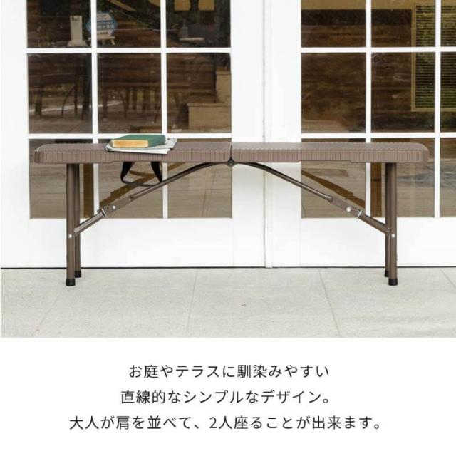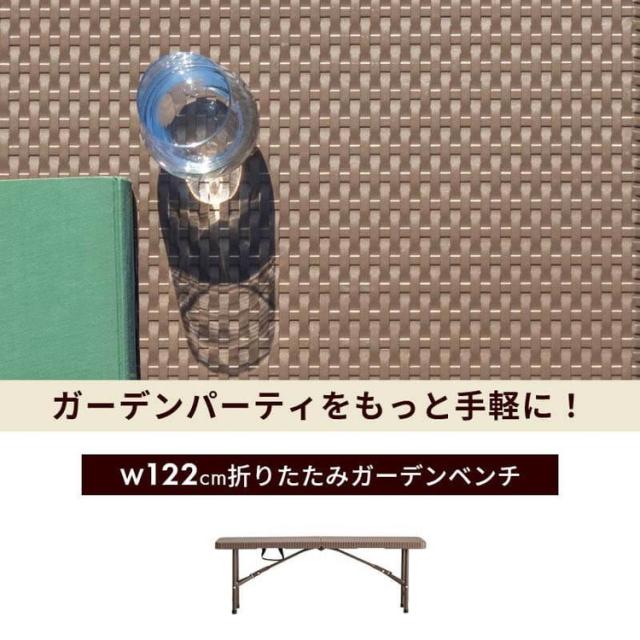 ラタン調 折りたたみガーデンベンチ 幅122cm