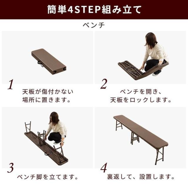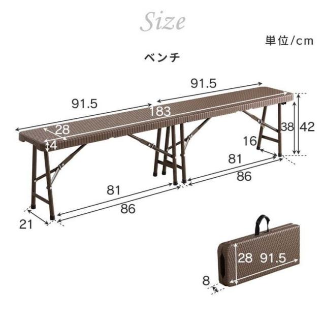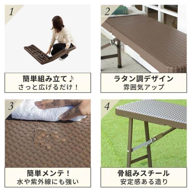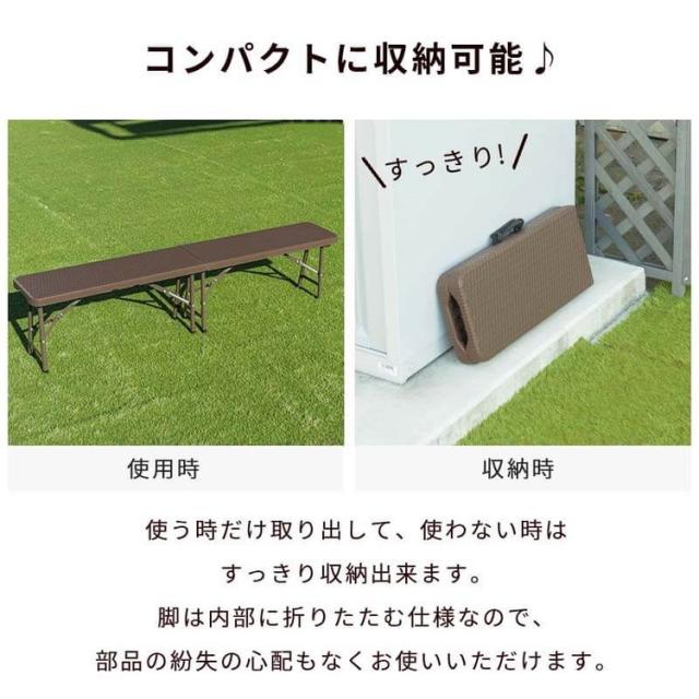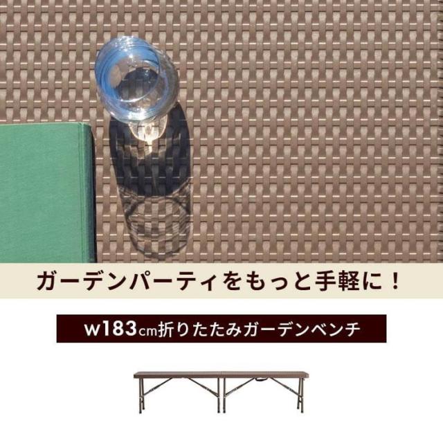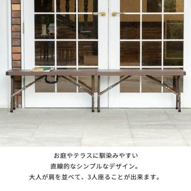 ラタン調 折りたたみガーデンベンチ 幅183cm