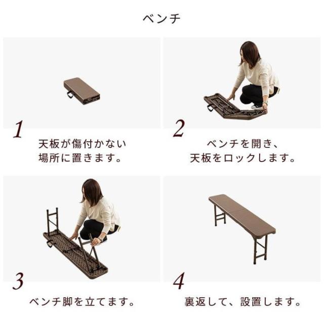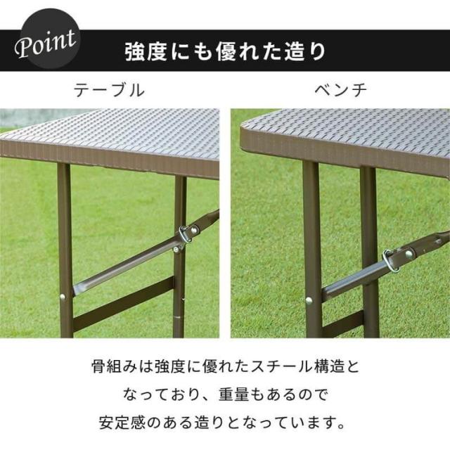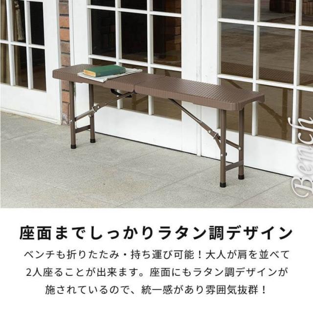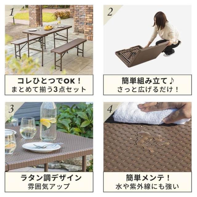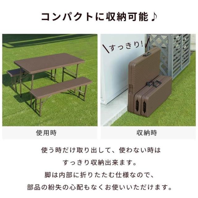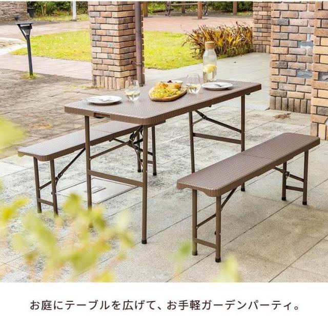 ラタン調 幅122cm折りたたみガーデン3点セット