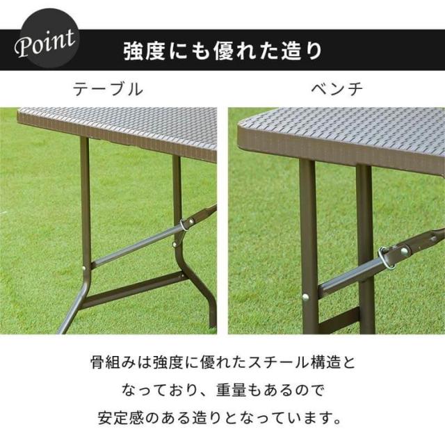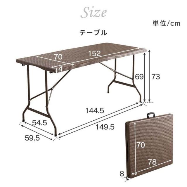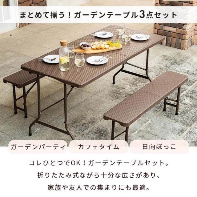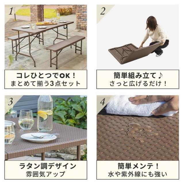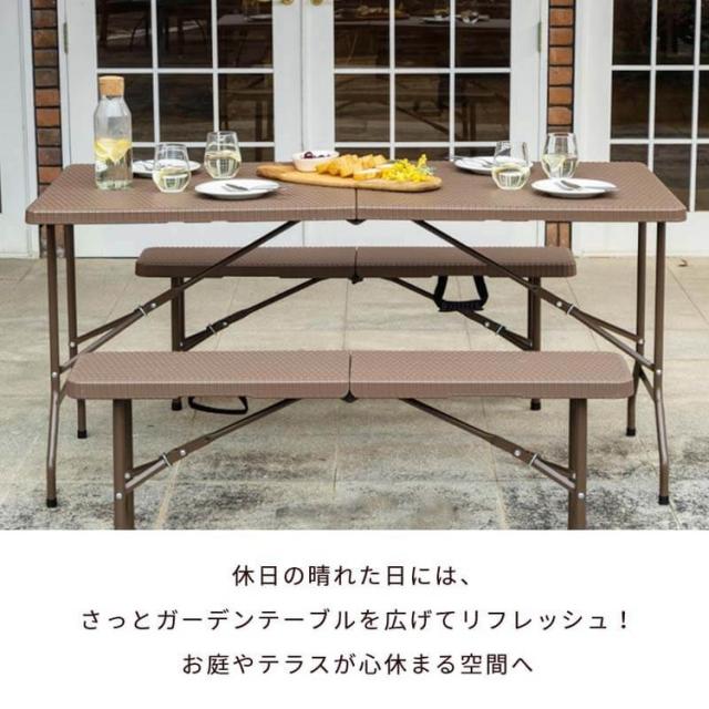 ラタン調 幅152cm折りたたみガーデン3点セット
