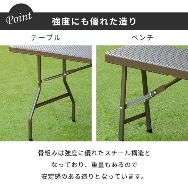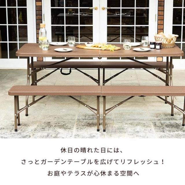 ラタン調 折りたたみ ガーデン 3点セット マカティ 幅180cm 折りたたみテーブル 折りたたみ ベンチ セット 屋外 テーブル(代引不可)【送料無料】