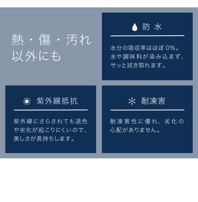 傷に強く、耐熱性、耐水性を兼ね備えた高級感があります。