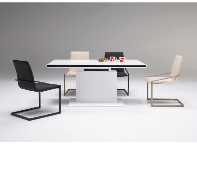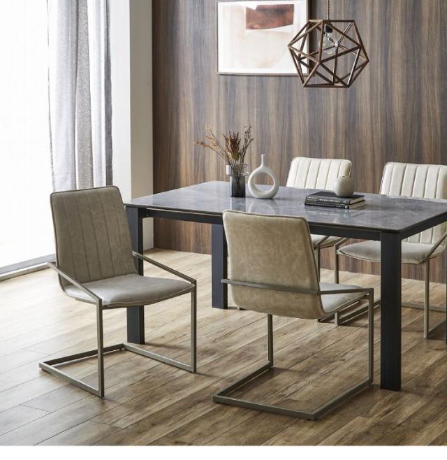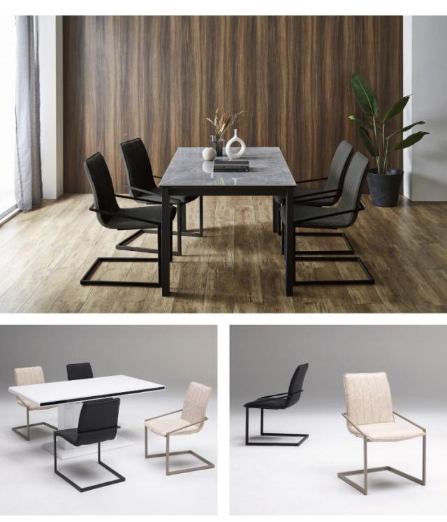 細いアイアンフレームが高級感演出。特徴のカンティレバーチェア