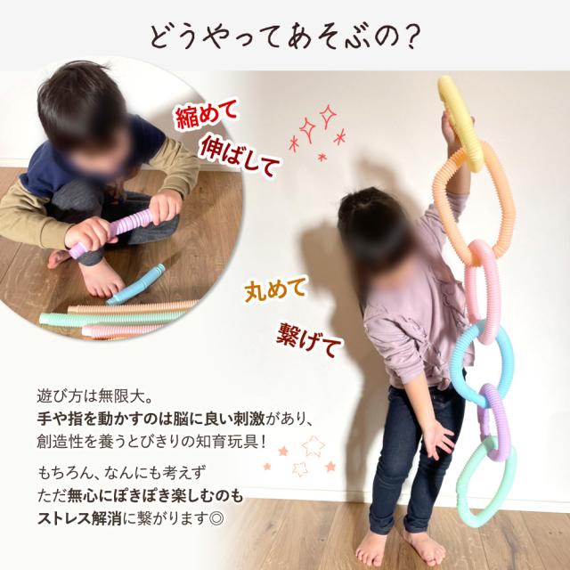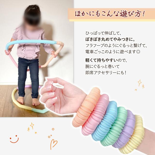 | 商品の説明 | 海外で大人気のぽきぽきおもちゃ。Youtubeでも話題! おうち時間を楽しみながら知育にも活躍するので、プレゼントとしても今選ばれています パステルカラーでおしゃれにかわいいポップチューブが、お得な大容量の全12本セットでお届け! 遊び方は無限大! 手や指を動かすのは脳に良い刺激があり、創造性を養うとびきりの知育玩具! もちろん、なんにも考えずただ無心にぽきぽき楽しむのもストレス発散に繋がります ひっぱって伸ばして、ぽきぽき丸めてやみつきに。 フラフープのようにぐるっと繋げて、電車ごっこのように遊べます 軽くて持ちやすいので、腕にぐるっと巻いて即席アクセサリーにも! お風呂になかなか入ってくれないお子さまでも、浴槽で夢中に遊べるこのおもちゃなら喜んで入れます おもちゃの中に水を入れて、重力の勉強にも。 実際に手にとって楽しめるから知育要素に最適なおもちゃなんです! スタッフの子供(6才)も夢中で遊んでいます! お誕生日の贈り物やお孫さんへのプレゼントとしてもオススメです。 |