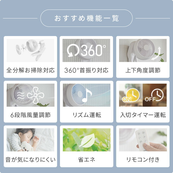 YAMAZEN ヤマゼン 山善 通販 夏物家電 季節家電 空調家電 3枚羽根 風量調節 首振り タイマー 静音 微風 省エネ エコ eco 節電 節約 リモコン 循環 エアコン併用 空気循環機 洗面所 脱衣所 風呂場 銭湯 温泉 大浴場 病院 クリニック エアーサーキュレーター サーキュレーターファン DCサーキュレーター DC壁掛け扇風機 上下左右 自動首振り 首ふり 省スペース 壁掛式 シンプル コンパクト 熱中症対策 ホワイト色 白色 全分解サーキュレーター 洗える サーキュレーター |