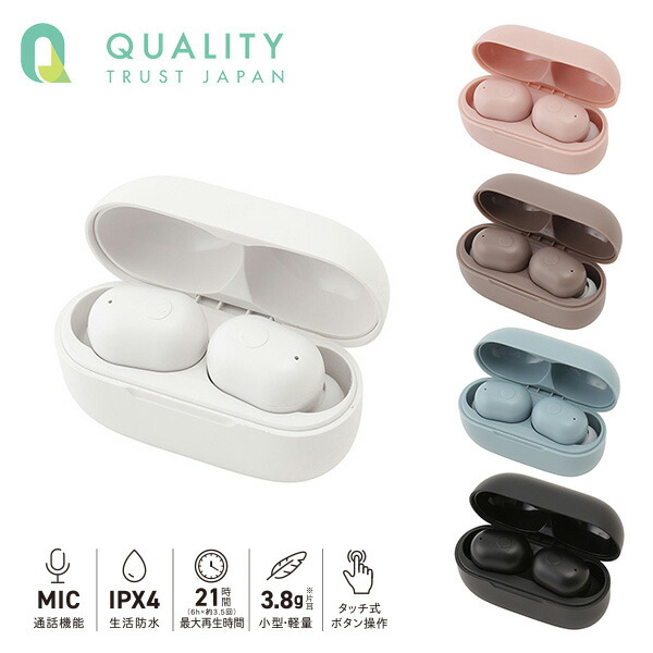| QTJ クオリティトラストジャパン 防水コンパクトワイヤレスイヤホン Bluetooth Ver5.1 TrueWireless QB-082C |