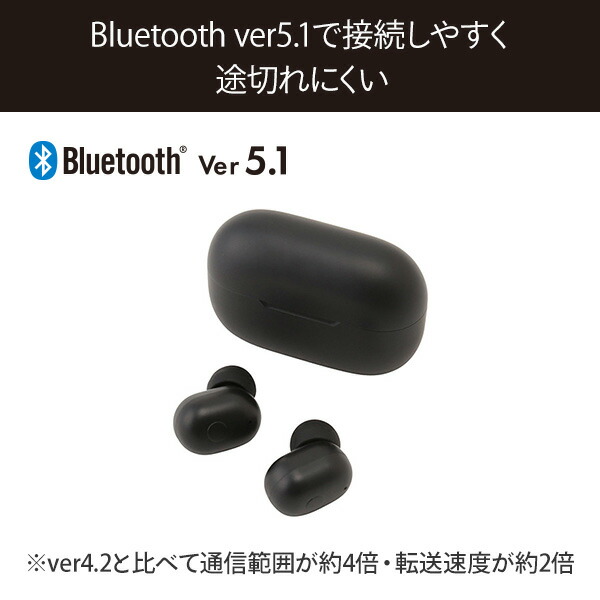 | 商品説明 | ●通信方式:Bluetooth ver5.1 ●最大通信距離:見通し約10m ●Bluetooth周波数:2.4GHz帯 ●プロファイル:HSP/HFP/A2DP/AVRCP ●コーデック:SBC/AAC ●防水・防塵:IPX4 ●マルチペアリング:対応 ●マルチポイント:非対応 ●連続動作最大時間:再生/通話約6時間 ●連続待受最大時間:約25時間(イヤホンのみ)、約180時間(充電ケース収納) ●音圧レベル:95±3dB ●入力端子:Type-C ●入力電源:5V/300mA ●ケースのイヤホン充電回数:約2.5回 ●イヤホンバッテリー容量:3.7V/35mAh ●充電ケースバッテリー容量:3.7V/300mAh ●イヤホン操作:タッチ式 ●付属品:取扱説明書、S/M/Lシリコンパッド×各1(※Mサイズは本体に装着済)、Type-C充電ケーブル ●Bluetooth ver5.1で接続しやすく途切れにくい ※ver4.2と比べて通信範囲が約4倍・転送速度が約2倍 ●iPhone、iPadで最適な音楽再生を実現する高音質コーデックAAC対応 ●左右のイヤホンをタッチするだけで操作可能 ●軽量片耳3.8gで装着時の耳への負担を軽減 |