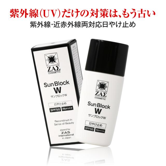 日焼け止めクリーム サンブロックW SPF50 PA++++ 紫外線 UV 近赤外線 IR をダブルでブロック しわ たるみ 対策に メンズコスメ ザスコスメティック ZAS