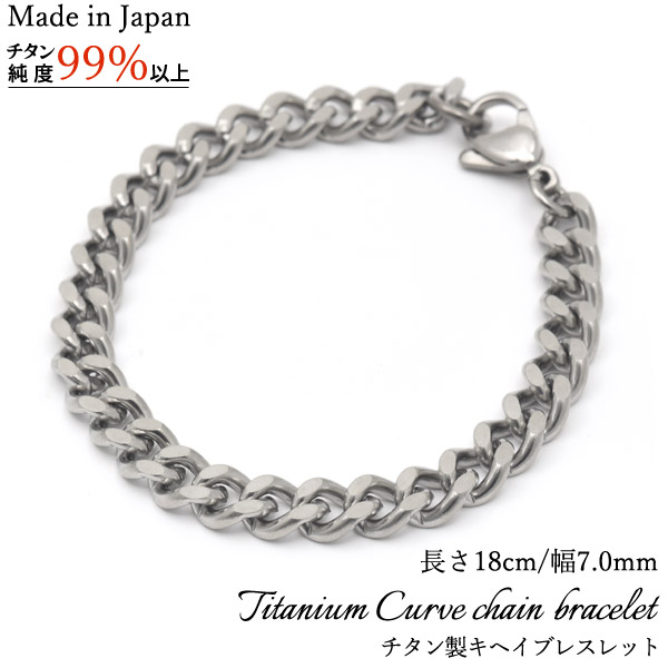 キヘイブレスレット チタン製 ブレスレット 日本製 長さ18cm 幅7.0mm チェーンブレスレット 喜平チェーン キヘイチェーン 男性 アクセ アクセサリー 錆びにくい アレルギーフリー 金属アレルギー